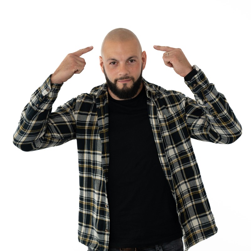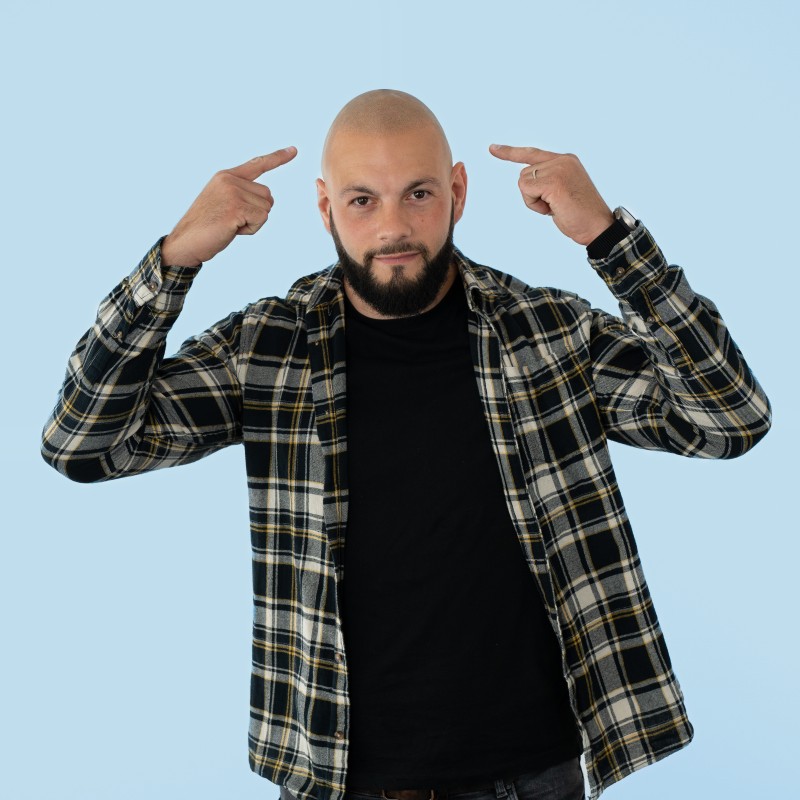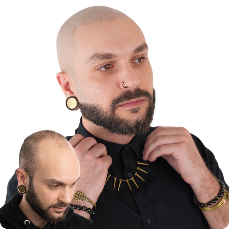 Nat, artiste en tricopigmentation, dépose des micro points d’encre bio-résorbable qui s’estompent avec le temps (5 ans en moyenne) dans la couche superficielle du derme de votre crâne pour imiter l’apparence d’un follicule.